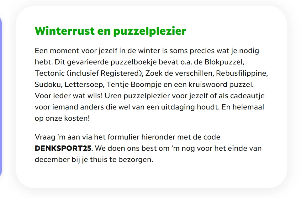 Voor dat puzzelboekje is een actiecode nodig. Hij pakte KPN maar denk niet dat dat de bedoeling is 😅 Hoe kom je aan een actiecode?
