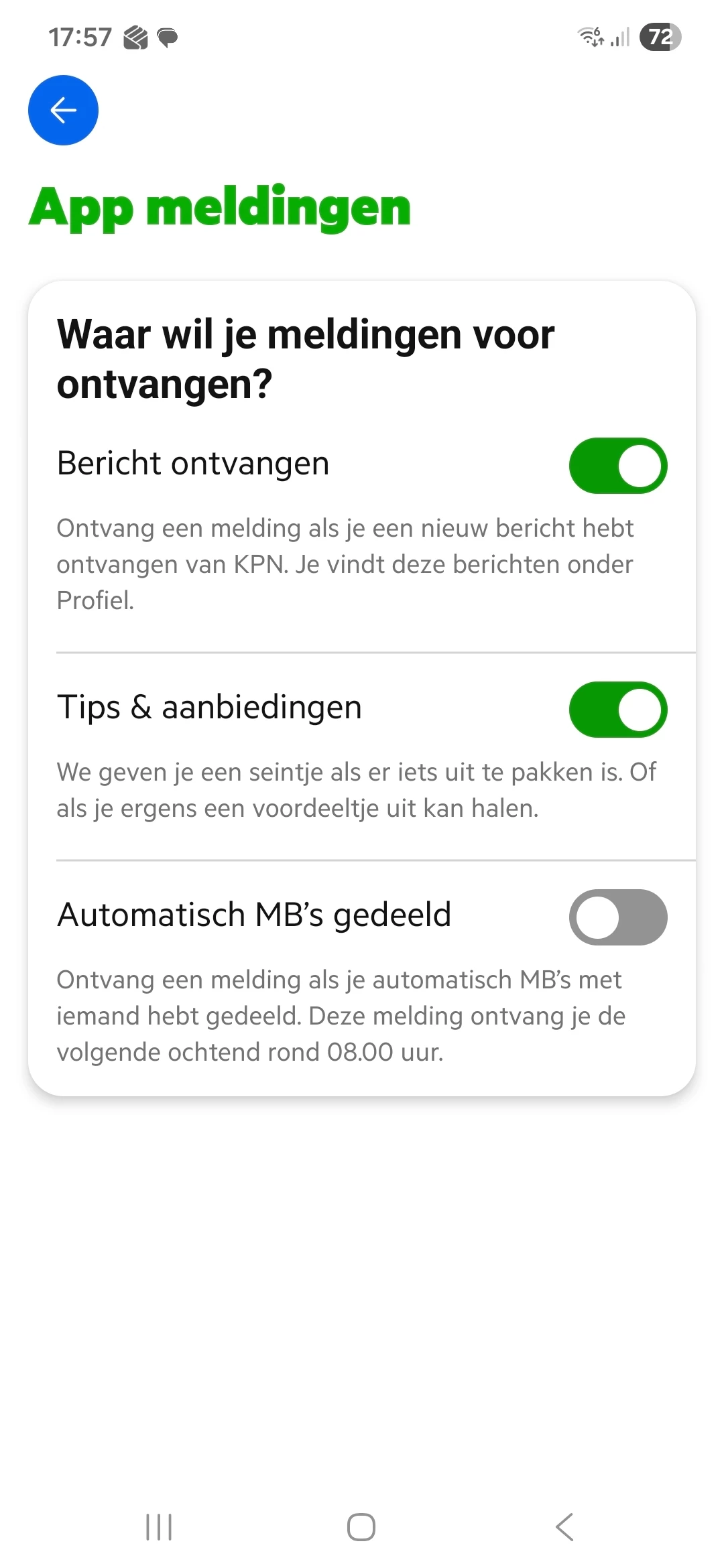 Ik heb bij App meldingen de optie ‘automatisch MB's gedeeld’ uitgezet maar krijg toch een melding iedere maand.