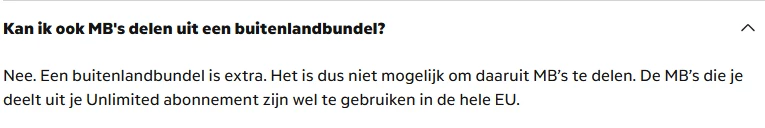SuperUnlimited+ heeft een onbeperkt data bundel voor in NL én de mogelijkheid om 100GB te delen. Die 100GB om te delen kan de ontvanger in heel de EU gebruiken. (bron)
