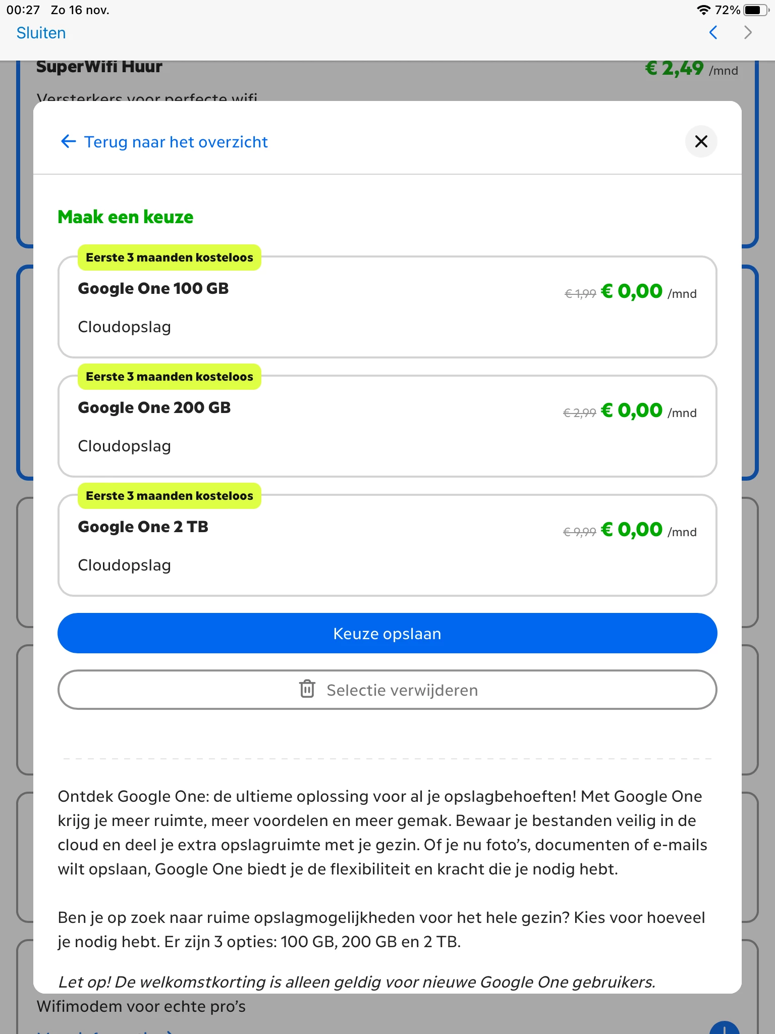 Verder is Google One niet te kiezen uit de mogelijke voordelen van Combivoordeel. Wat je wel kunt kiezen?: