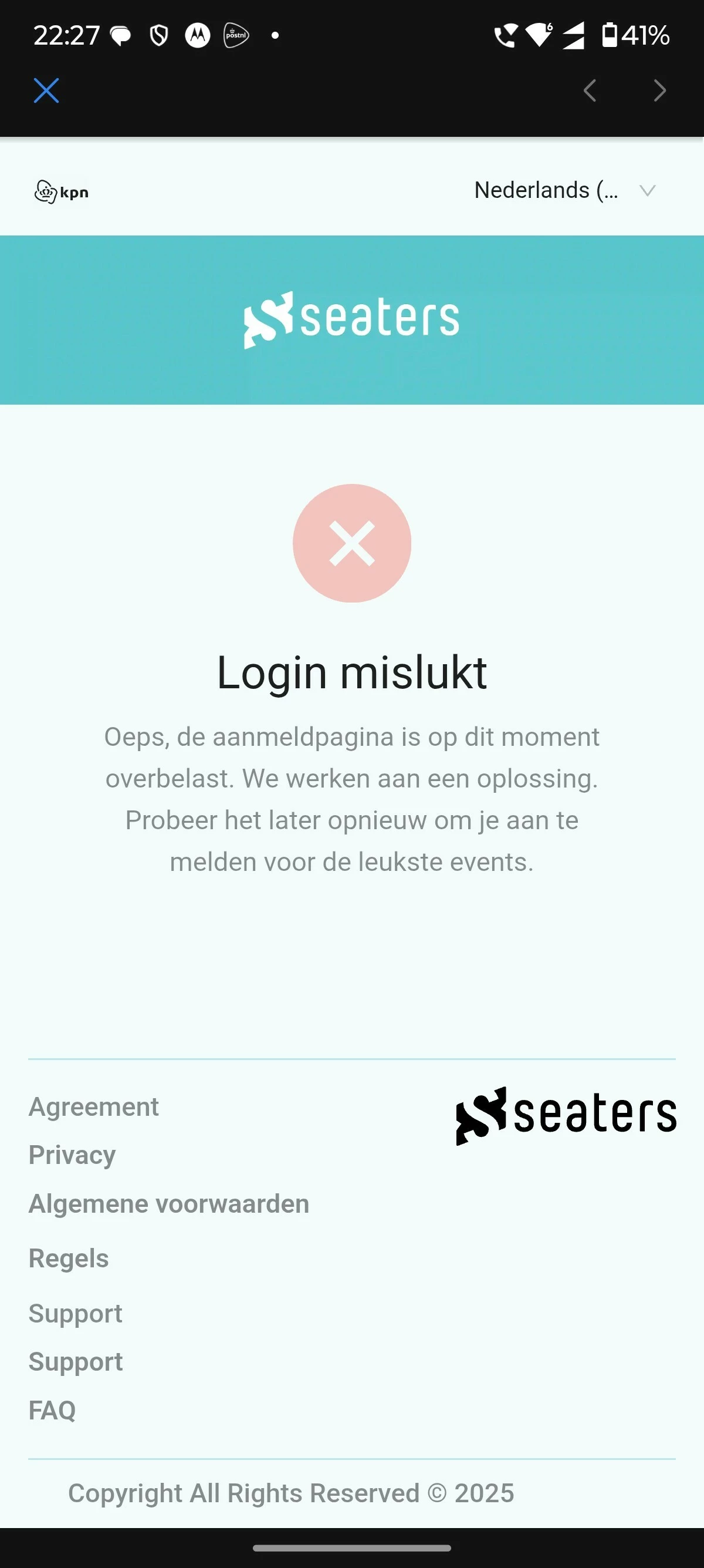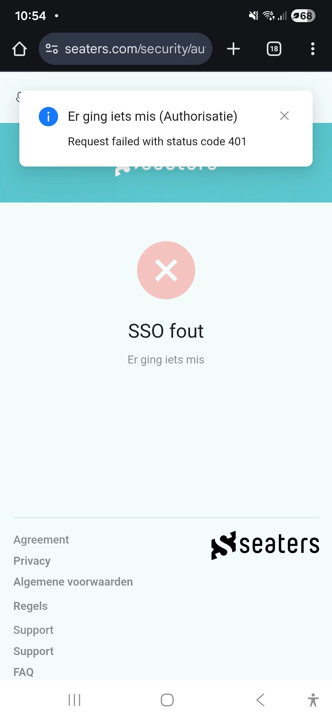 5. Er is een tijdelijke storing bij de identiteitsprovider of bij Seaters
