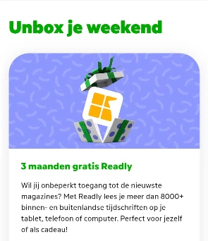 Deze vrijdag vind je meer dan 8000+ tijdschriften in de MijnKPN app. Je krijgt namelijk 3 maanden gratis Readly (wel even zelf weer opzeggen als je na deze periode geen gebruik ervan wiltmaken)! Op naar volgende week vrijdag🎉
