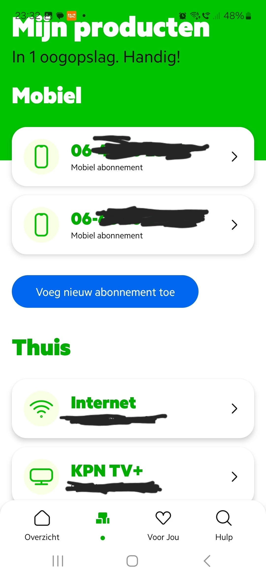 Heb je een beetje recente KPN abonnementen? Geen oud Telfort abonnement ofzo? Of iets van XS4ALL?