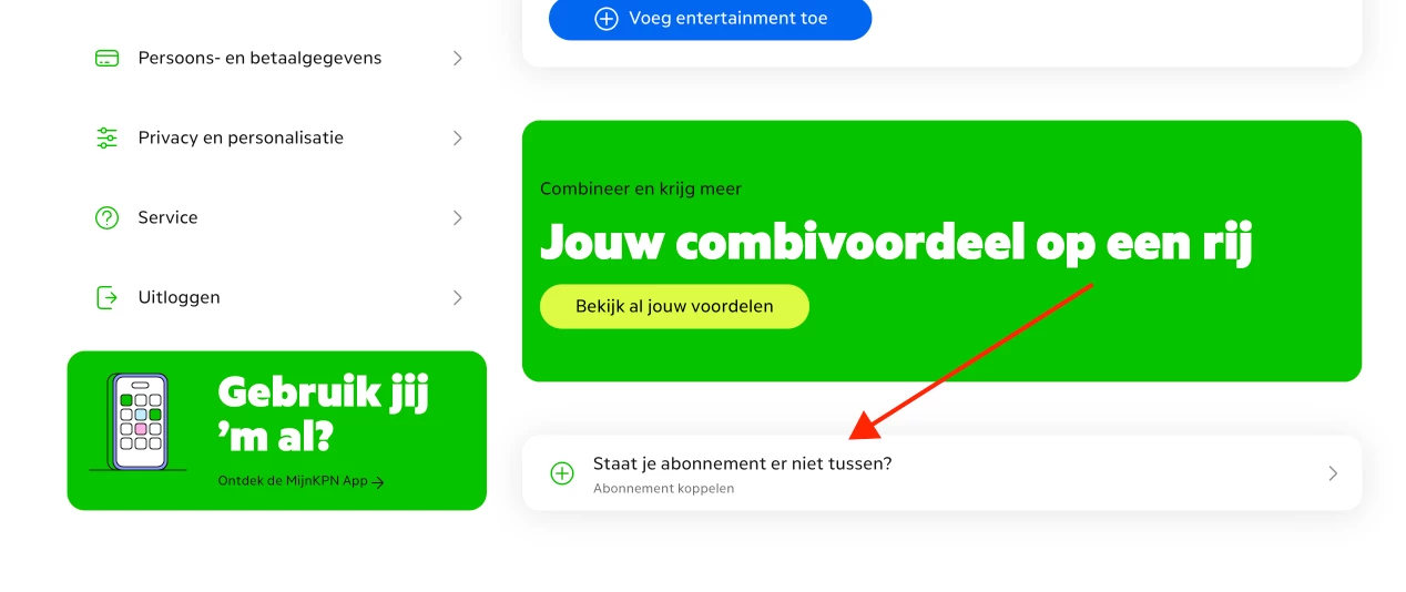 Wellicht moet je ze nog even koppelen. Log in bij mijnkpn en ga naar producten, scroll naar onder, als het goed is zie je deze optie…