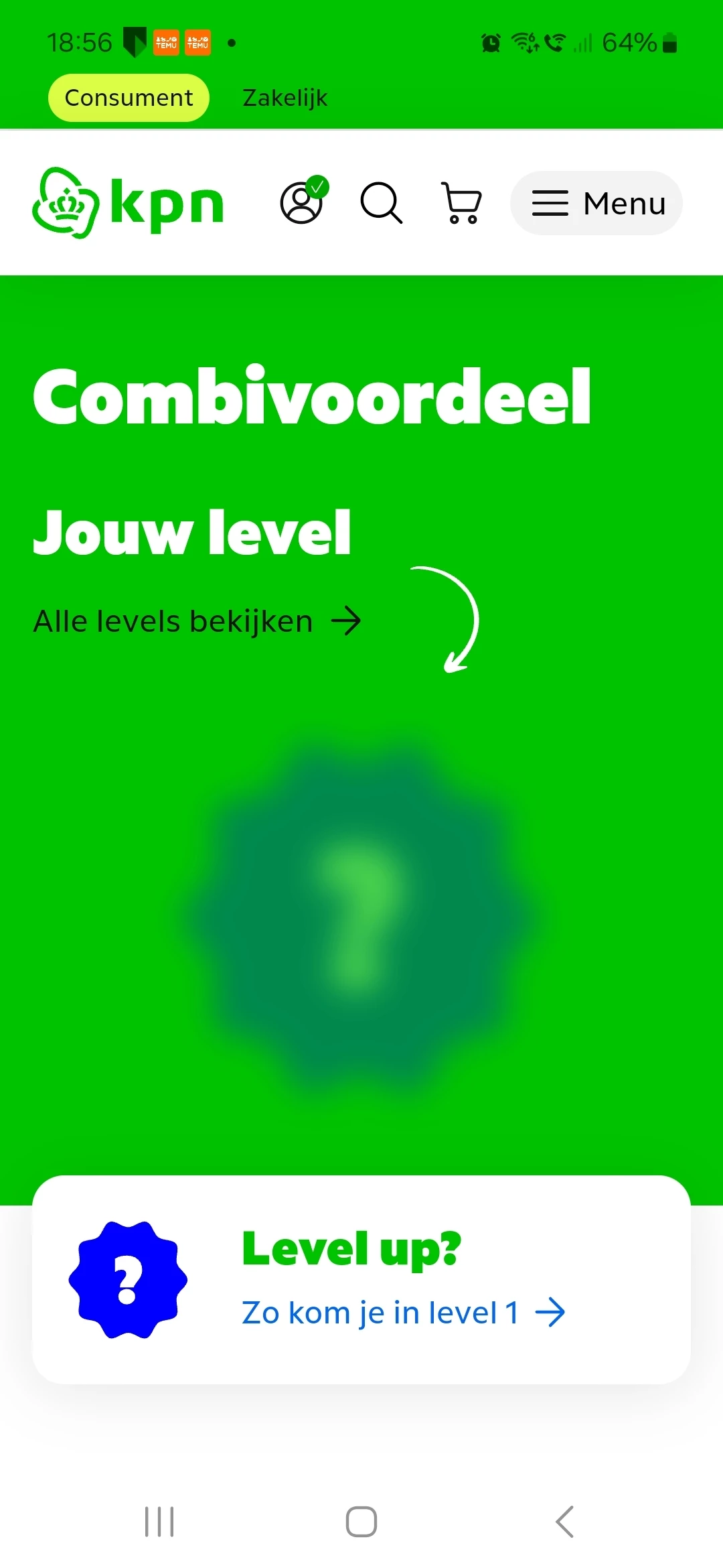 Als ik in de app kijk bij combivoordeel, staat mijn level blurry, niks te zien dus.