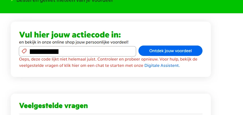 Dan was er gisteren duidelijk een storing in het systeem, waardoor deze de actiecode niet direct herkende, wat uiteraard vervelend is voor TS ​@Jotibe als je er gebruik van wilt maken.