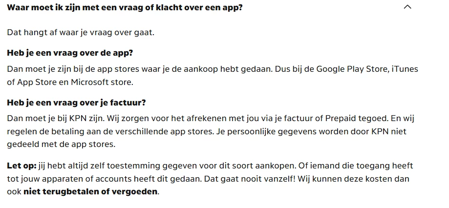 Verder, als er betalingen zijn gedaan door een minderjarige via een bepaalde store, dan moet je bij de desbetreffende store zijn om dit terug te vorderen. KPN zegt hier het volgende over: