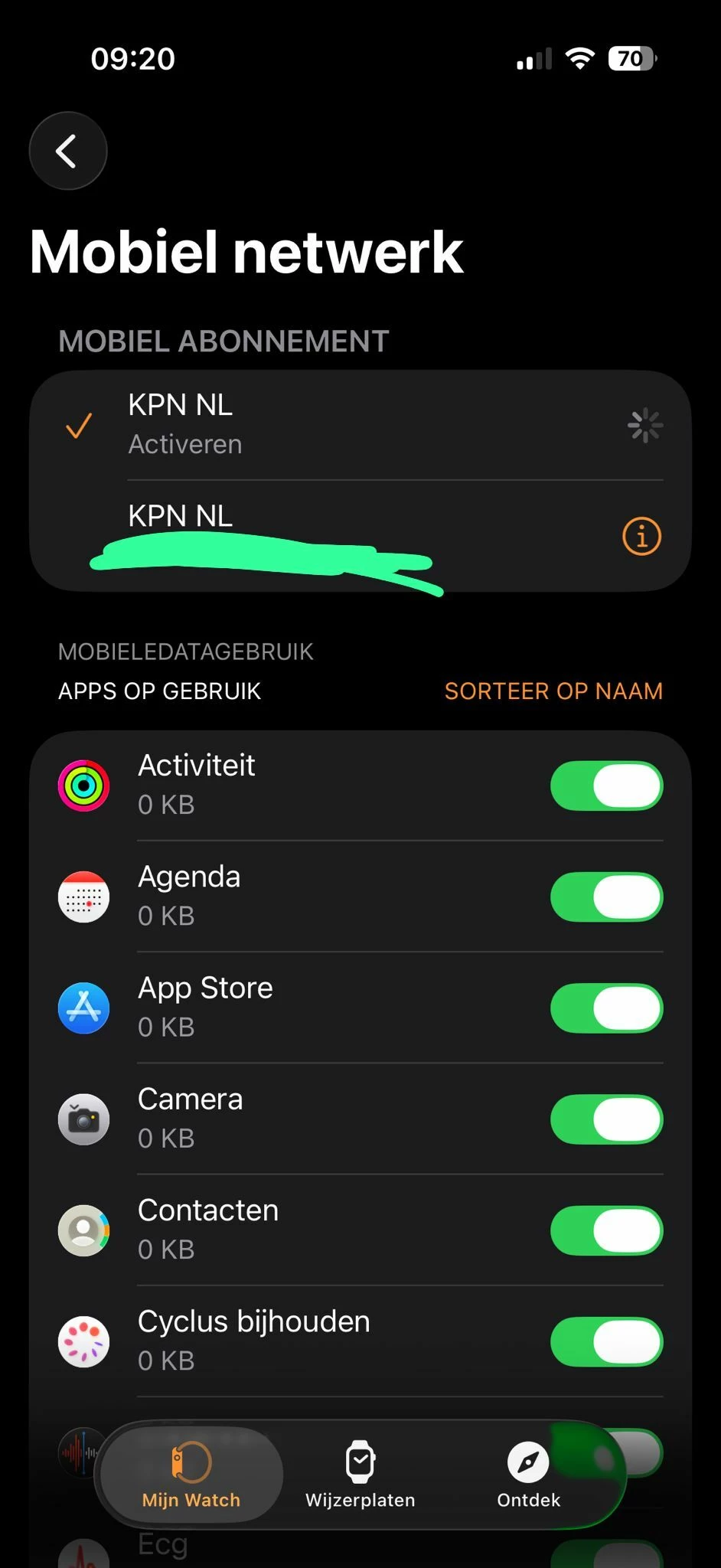 Aantal dagen geleden een multisim aangevraagd voor mijn applewatch series 9. Ben al bij de kan winkel geweest. zelf ook meerder dingen geprobeerd en hij blijft hangen op activeren. al opnieuw ingesteld, terug gegaan naar fabrieksinstellingen, gereset, opnieuw opgestart, van alles al geprobeerd zowel thuis zelf als met de medewerker. in het systeem van kan was de multisim ook niet te vinden. We weten niet zo goed meer hoe we dit moeten oplossen. met vriendelijke groeten, Mirthe.