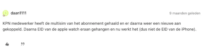 Ik kon uberhaupt geen esim meer inschakelen dmv de apple watch app. Bij het activeren kreeg ik een beeld vanuit kpn waarin stond “oeps er is iets fout gegaan”.