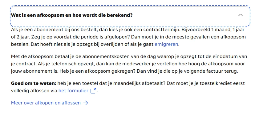 U kunt het contract afkopen door 12 keer het maandbedrag te betalen.