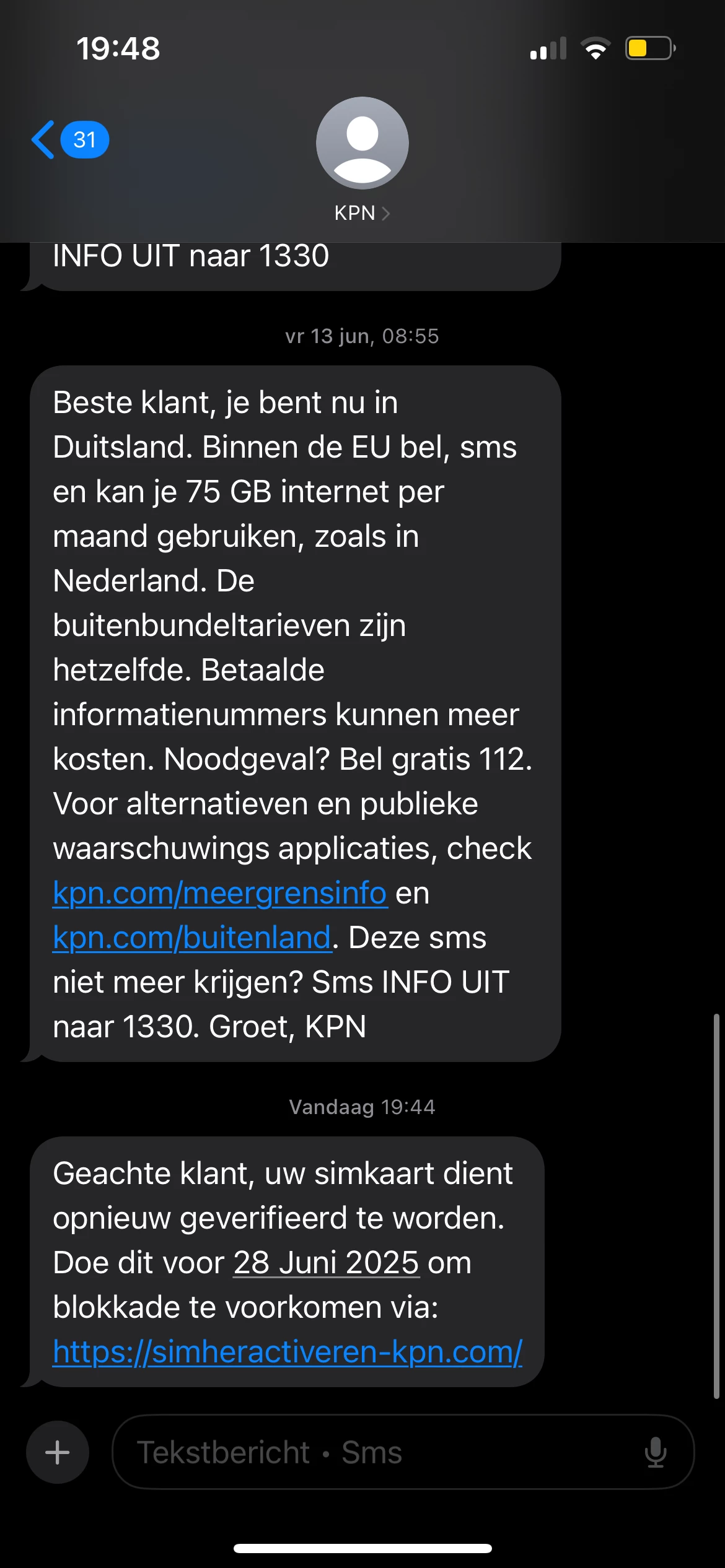 Bericht ontvangen om simkaart te verifiëren, komt deze van KPN?