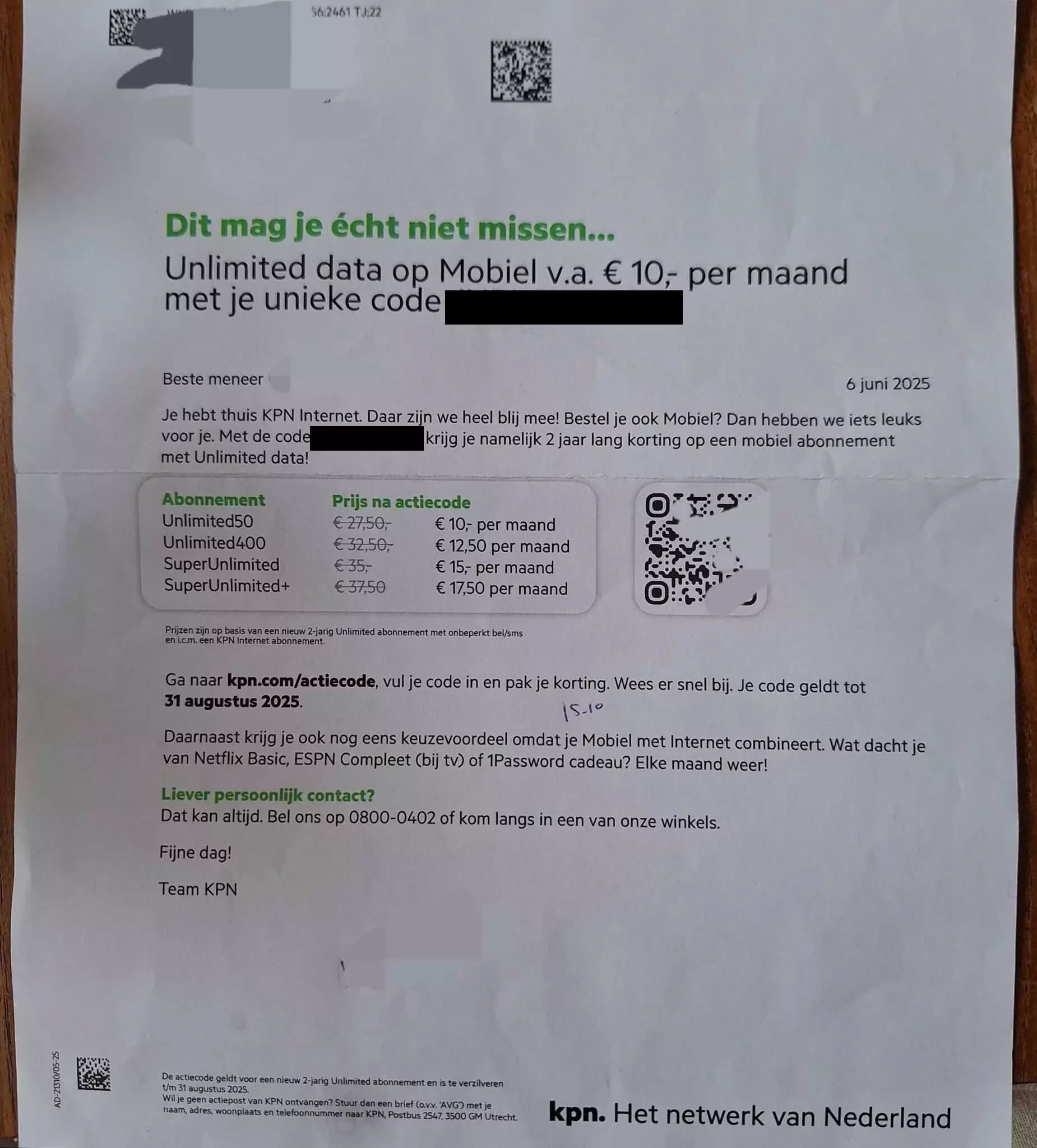 Aha fijn. Dit is echt zo'n brief die klanten zoals ik niet krijgen natuurlijk...