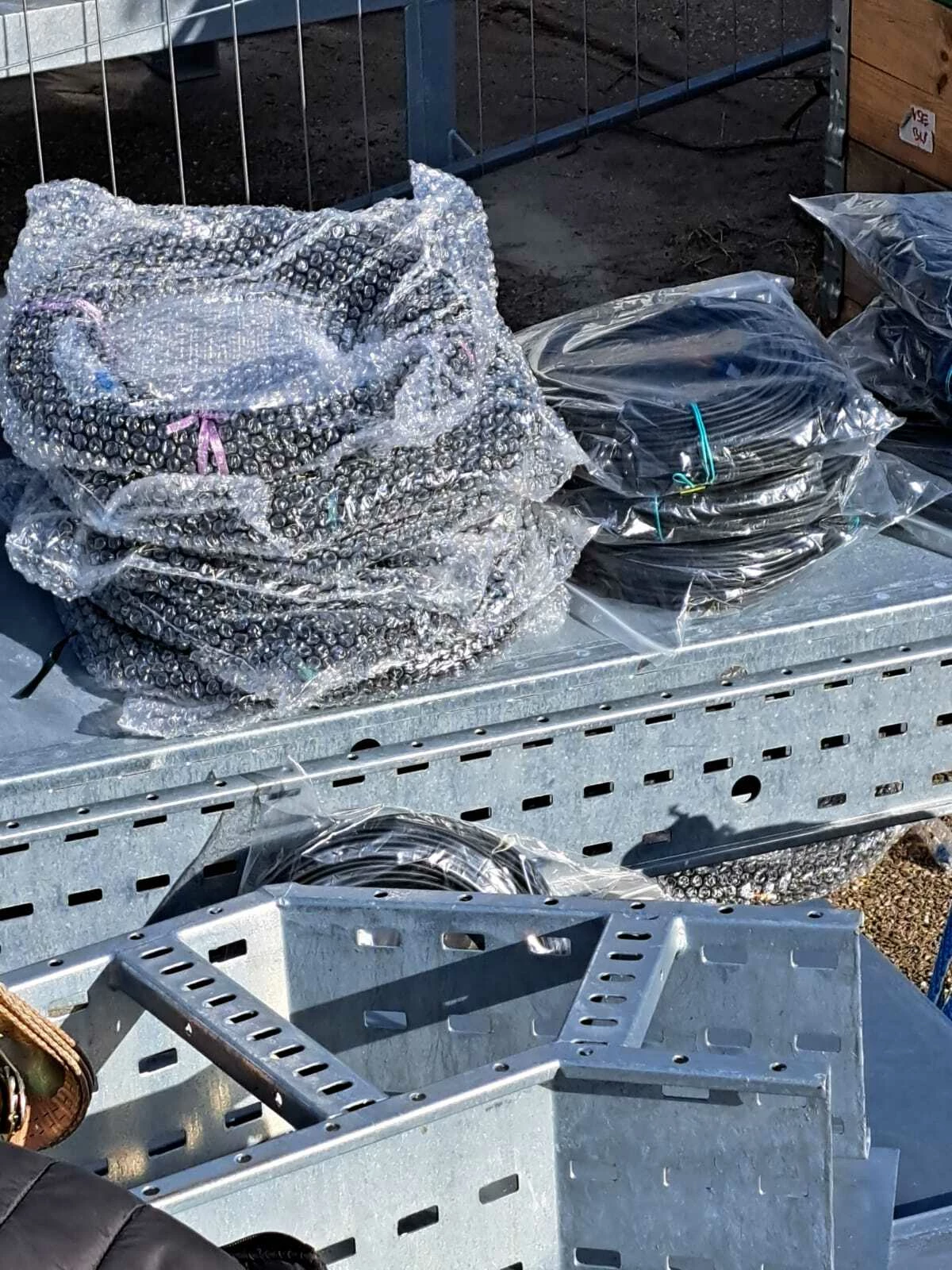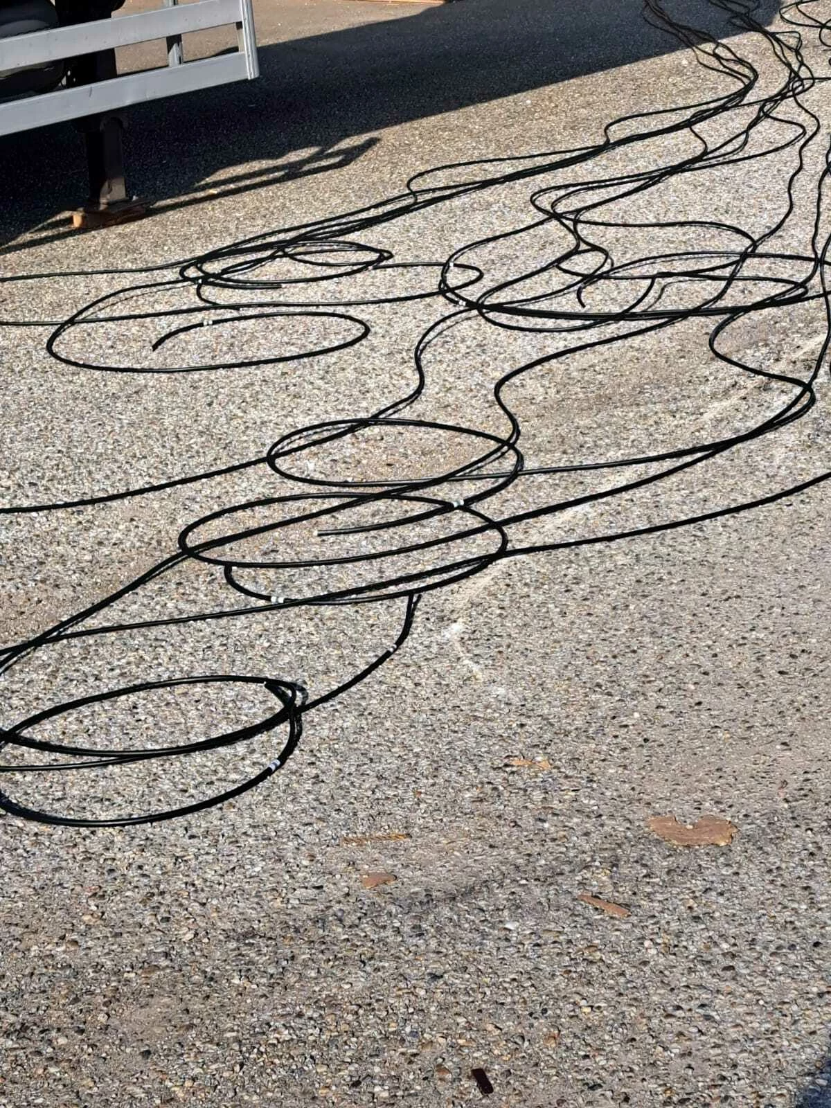 Alle antennes zijn nog niet aangesloten, want er gaan nog geen zwarte kabels naar beneden, inclusief de kabels voor stroom.