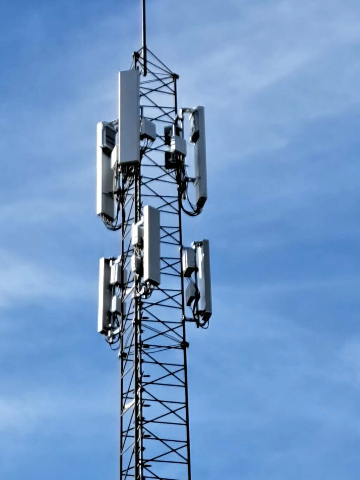 Het is niet gemakkelijk te zien, omdat de foto iets te ver van deze mast is genomen, en je niet hebt ingezoomd op de antennes zelf.