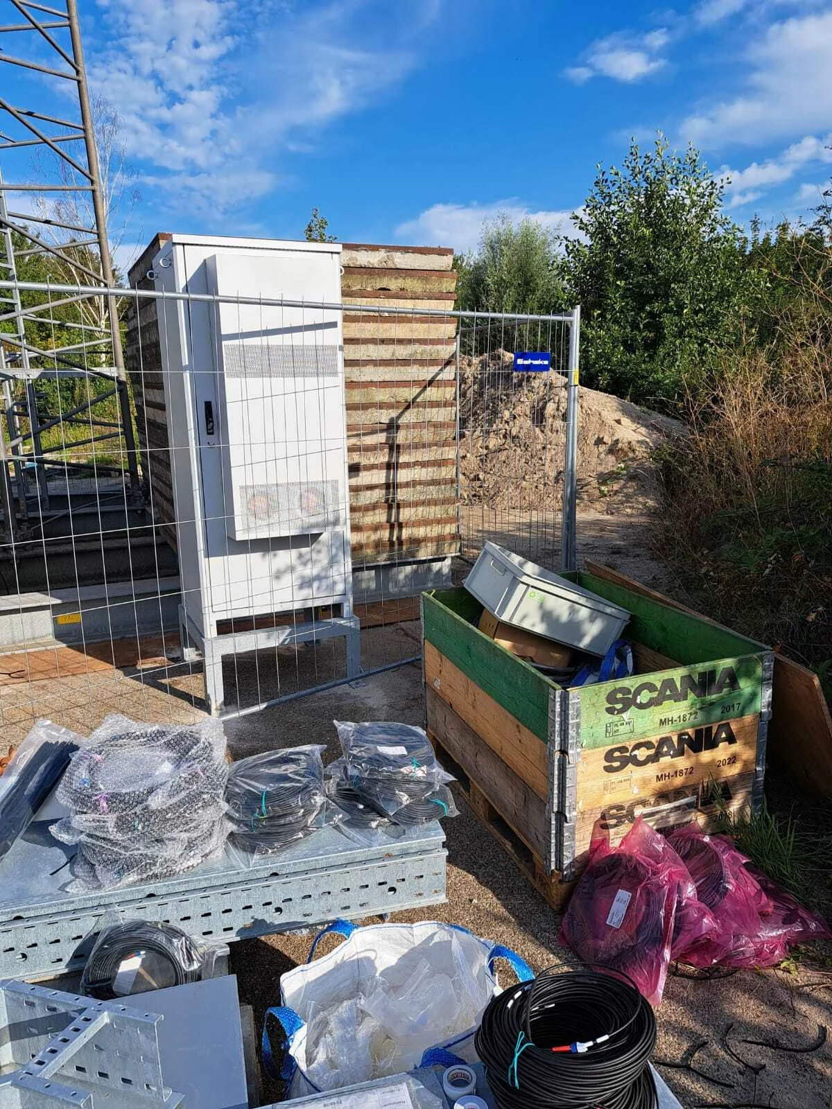 Werklui ook even gesproken (Polen). Vandaag gaan ze de kabels installeren, maar wanneer de mast actief wordt is nog niet duidelijk. Reden is dat er ook nog een stroomkabel aangelegd moet worden.