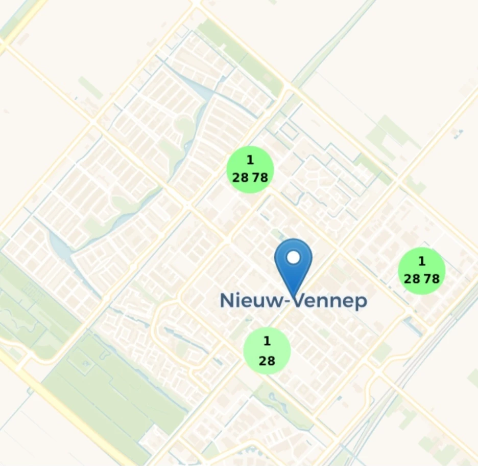 Nieuw Vennep heeft maar drie locaties waar KPN zendmasten staan, namelijk: