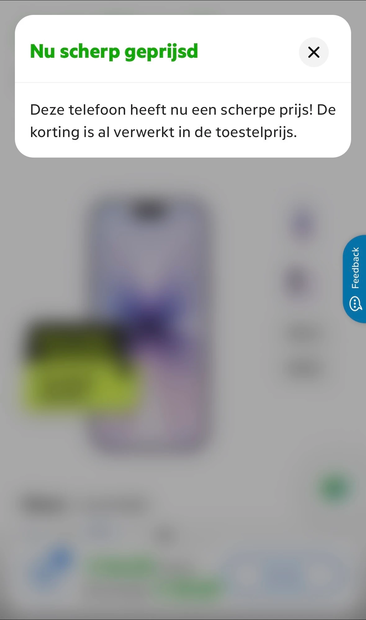 Op de website druk je voor meer info over de Black Friday actie. Daar omschrijven ze het als volgt; Deze telefoon heeft nu een scherpe prijs! De korting is al verwerkt in de toestelprijs.