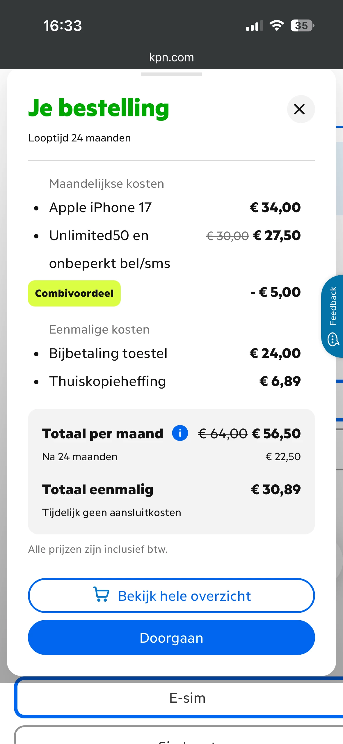 Beste KPN, op jullie website vermeld jullie dat er sinds deze week Black Friday acties zijn op de iPhone 17 in combinatie met een mobiele telefoonabonnement. Eerder deze maand waren de prijzen exact hetzelfde.Dit is in strijd met de omnibus regelgeving. Mij lijkt het dan ook dat er een fout is op de website of dat jullie bewust klanten of consumenten aan het misleiden zijn met valse aanbiedingen.