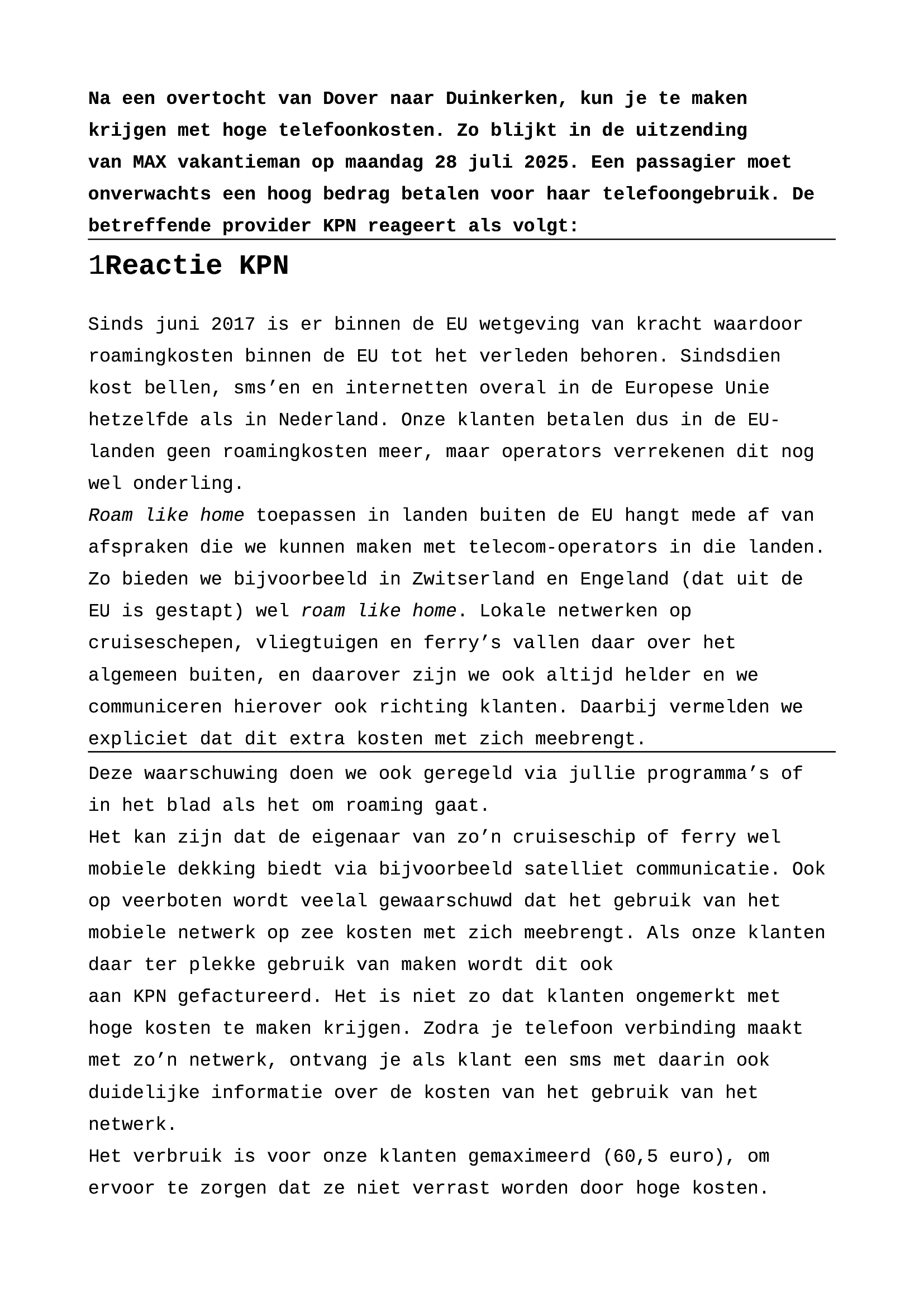 In zijn gedachtegoed, zeg ik het daarom ook: KPN moet gebruik buiten de EU standaard uitzetten, zodat klanten niet langer meer voor verassingen komen te staan.