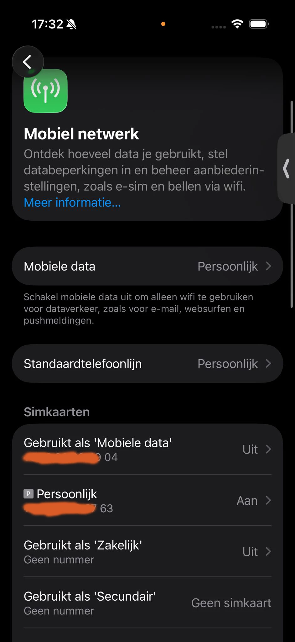 Als dit goed gaat en ook met het juiste nummer, dan mobiele data weer aanzetten en ook de roaming instellingen controleren. Ik hoor heel graag of het dan weer goed gaat.