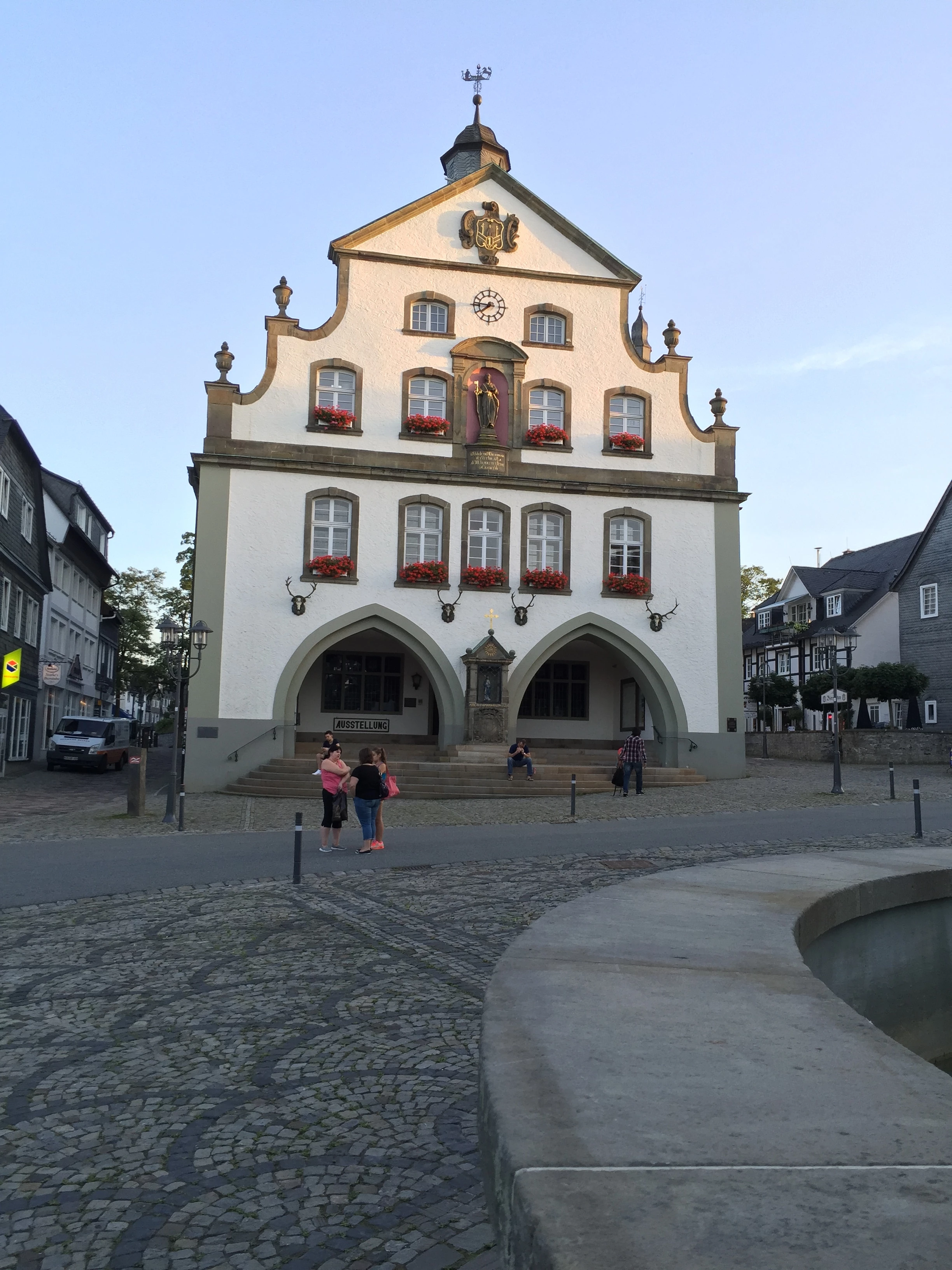 Hieronder het Gemeentehuis van Brilon, aan een prachtig aangelegde plein met fontein.