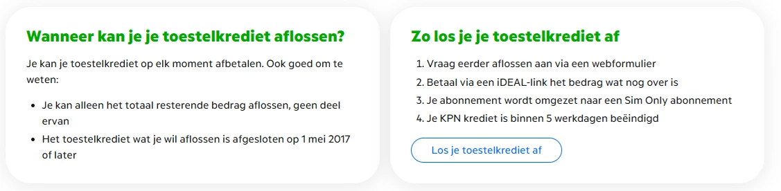 Hoe je jouw toestelkrediet vervroegd kan aflossen vind je op de KPN website: