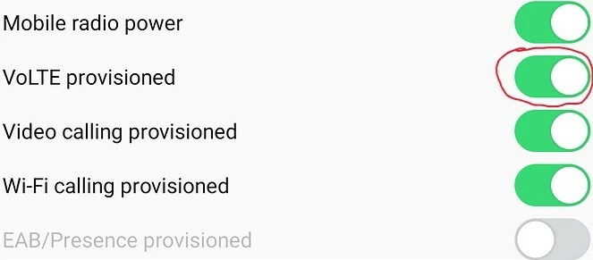 Als dit grijs staat, is VoLTE vanuit KPN gedeactiveerd en moet gefixed worden door KPN.