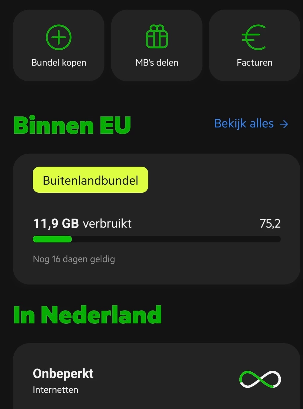 Dat is overigens 40 GB per maand buiten Nederland. Mogelijk al 30 GB gebruikt bij eerder bezoeken deze factuurmaand.