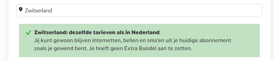 Is mijn abonnement in Zwitersland te gebruiken zonder extra kosten?