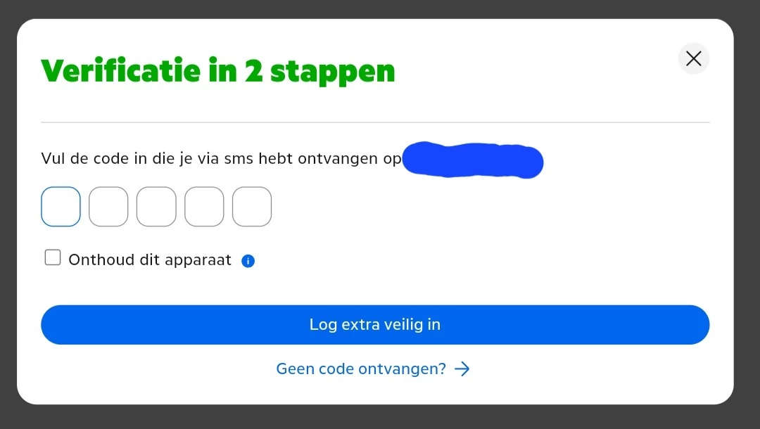 En voor de MijnKPN app op telefoon is éénmalig sms verificatie nodig. Via de inlogcode van 5 cijfers, op te geven bij installatie van de app, kun je zonder sms verificatie inloggen.