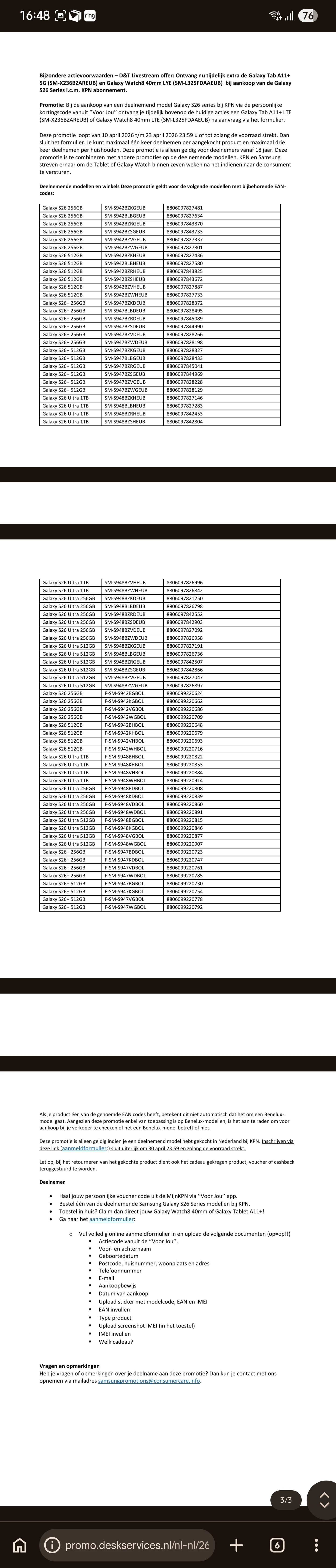Even bij de bestel- en actievoorwaarden kijken zowel bij KPN als Samsung ​@Ikweethetniet2026