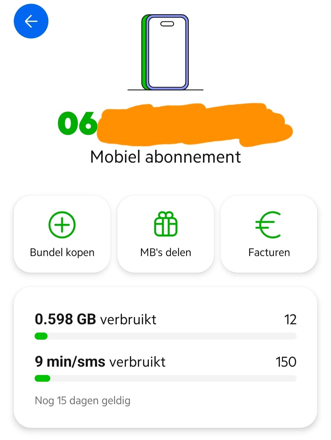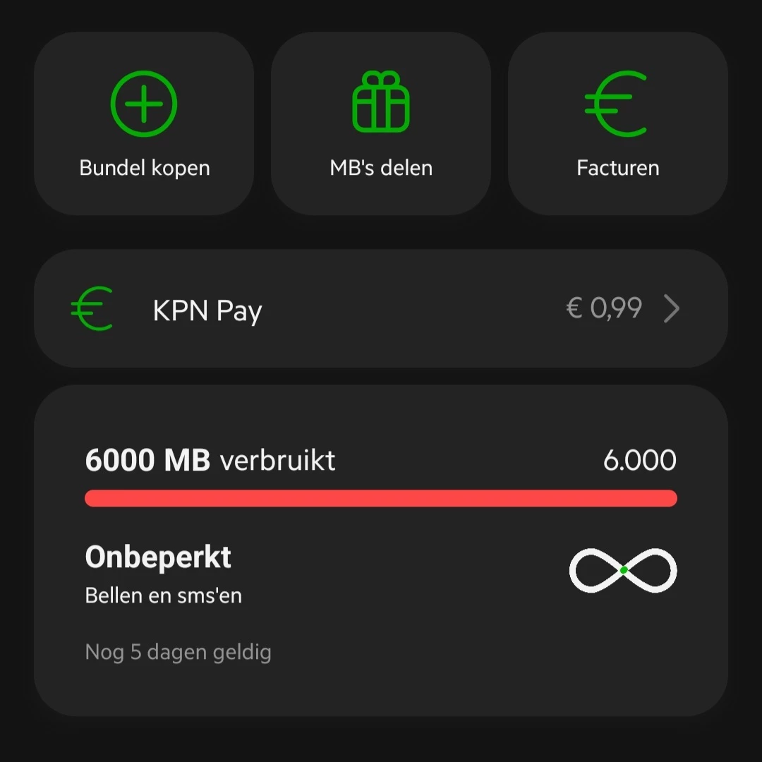 Kun je een schermafdruk plaatsen van de MijnKPN app waar je mb's zichtbaar zijn? Zoiets?