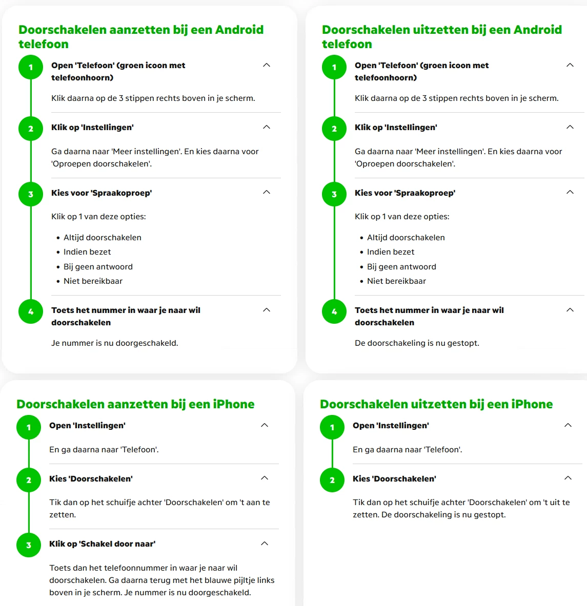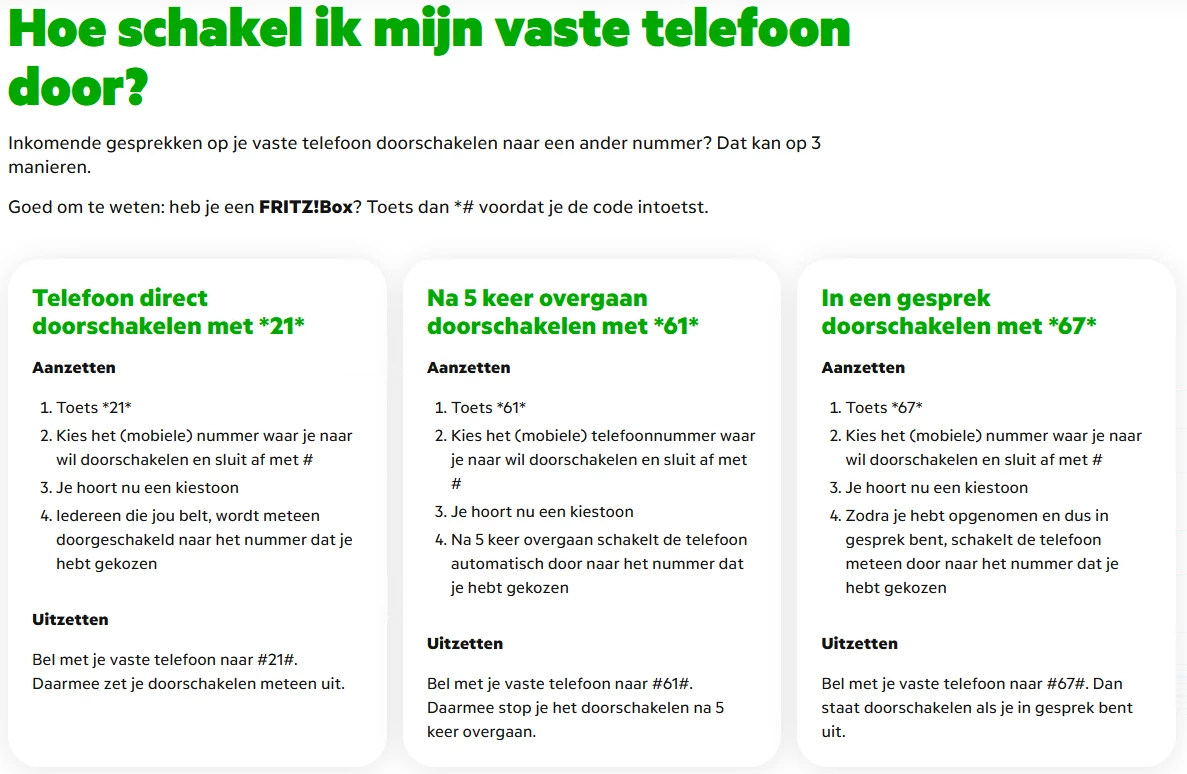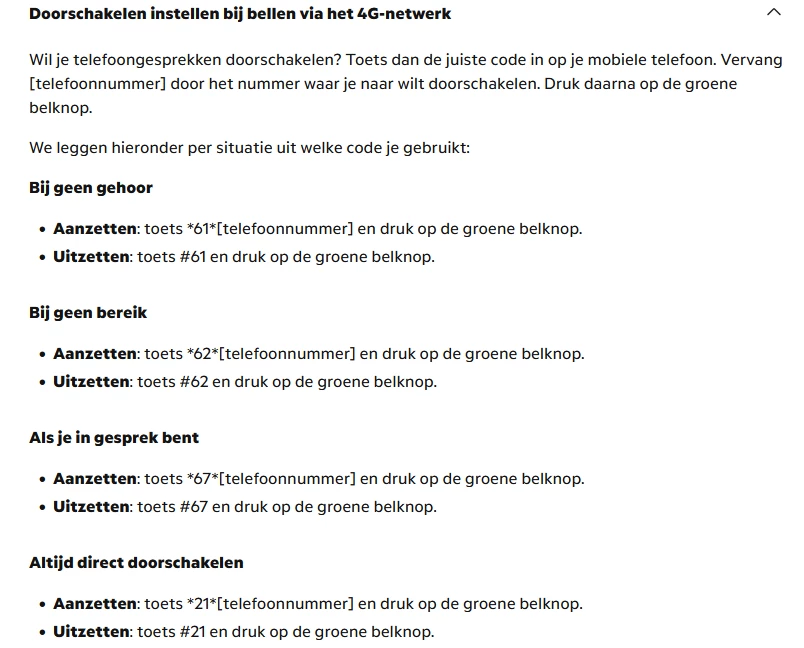Voor mobiel kan je de doorschakelingen zo uitzetten: