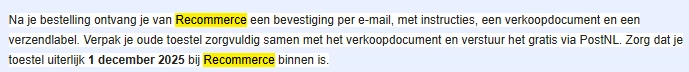 Mail gekregen van Recommerce waarin staat dat de toestel die ik naar ze wil sturen voor 1 december bij Recommerce binnen moet zijn.