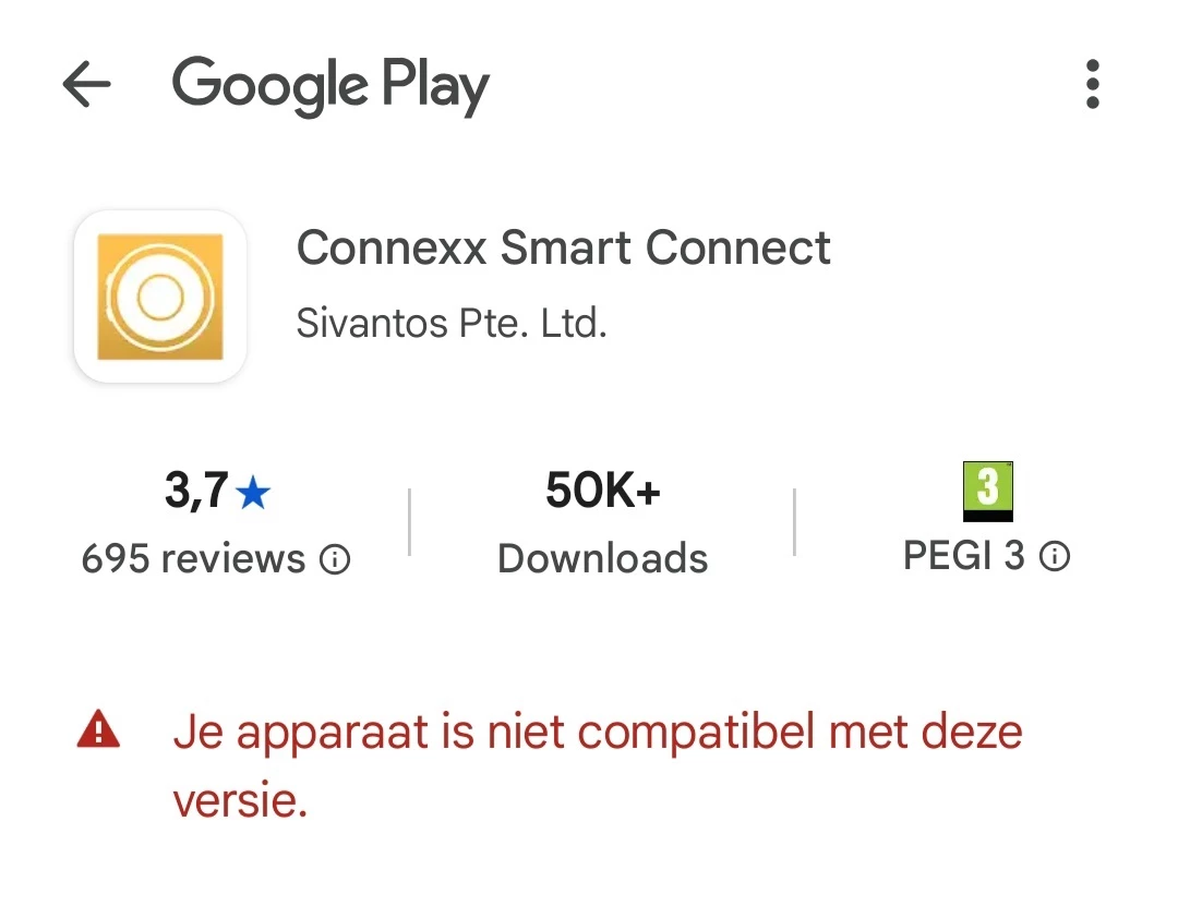 Ik neem aan dat je deze app gebruikt Connexx Smart Connect - Apps op Google Play ? Ik zie dat het een verouderde app is en dat er meer gebruikers zijn met verbindingsproblemen.
