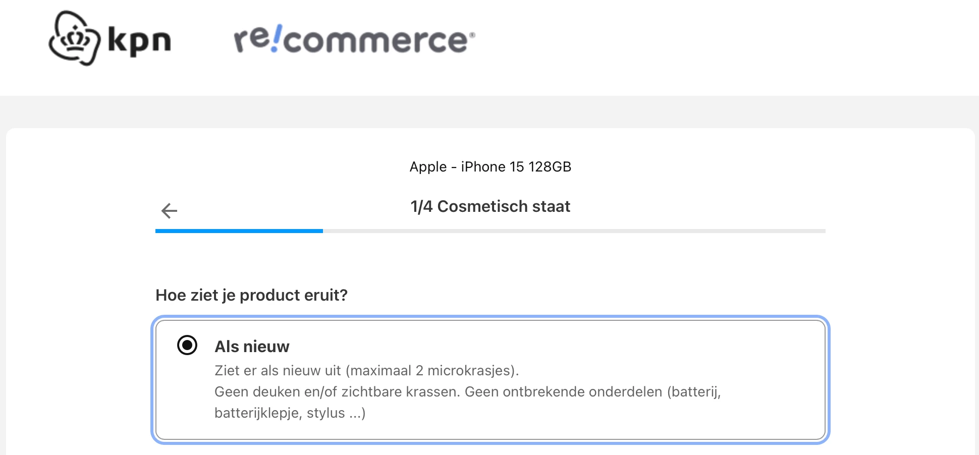 Waarschijnlijk heeft u het toestel als ‘nieuw’ geslecteerd/aangegeven, waar een goed bod op is uitgekomen vanuit Recommerce in eerste instantie.
