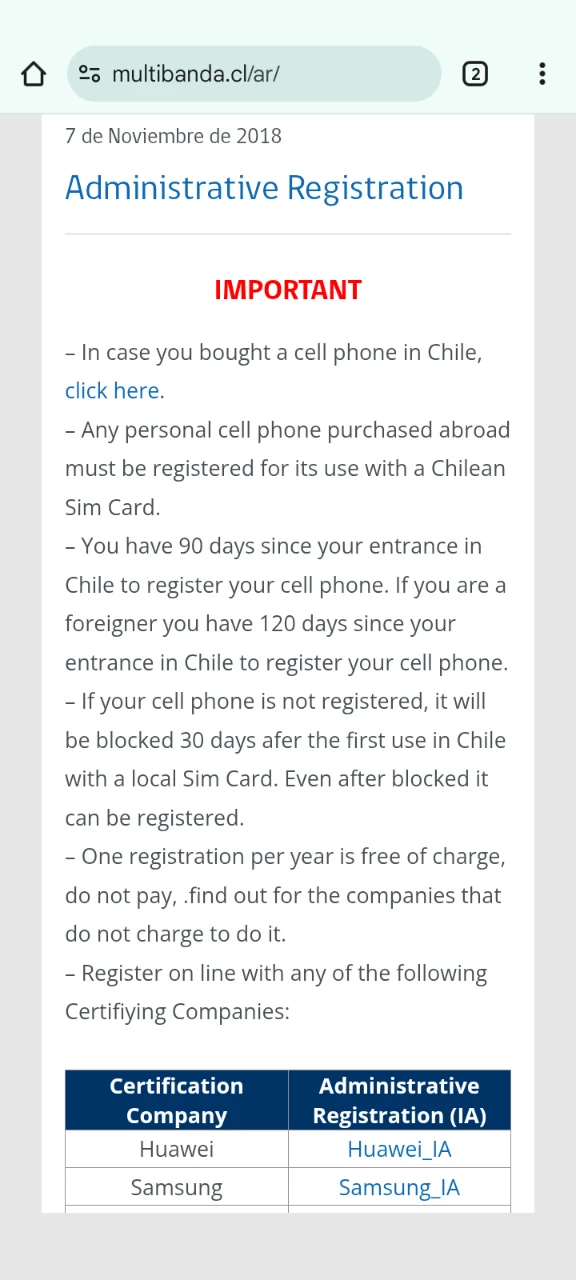 Voor het geval dat er ook een Chileense sim in de telefoon is/wordt gebruikt, is er dan misschien een IMEI blokkade ingegaan?