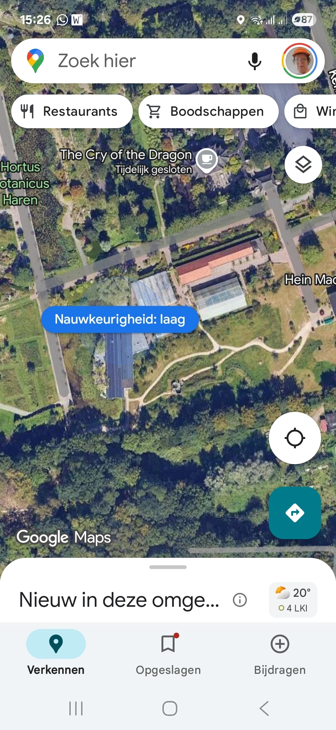 En omdat het op verschillende plekken gebeurd maar bij De Plantage in Hortus Botanicus Haren het ergste is geef ik daarvan een schermafbeelding van waar ik ben met Google Maps. Ik gebruik een hotspot en wisselen van smartphone gaat niet. 1: ik heb geen reserve smartphone en ga het ook niet kopen. Omdat ik twee simkaarten erin heb. En met een tweede S21 FE heb ik als ik het bij Coolblue in Groningen zou kopen niet alles wat nodig is. Geen documenten, foto's en filmpjes wat de smartphone wat ik nu gebruik wel heeft in het interne geheugen samen met Google Foto's en Onedrive.