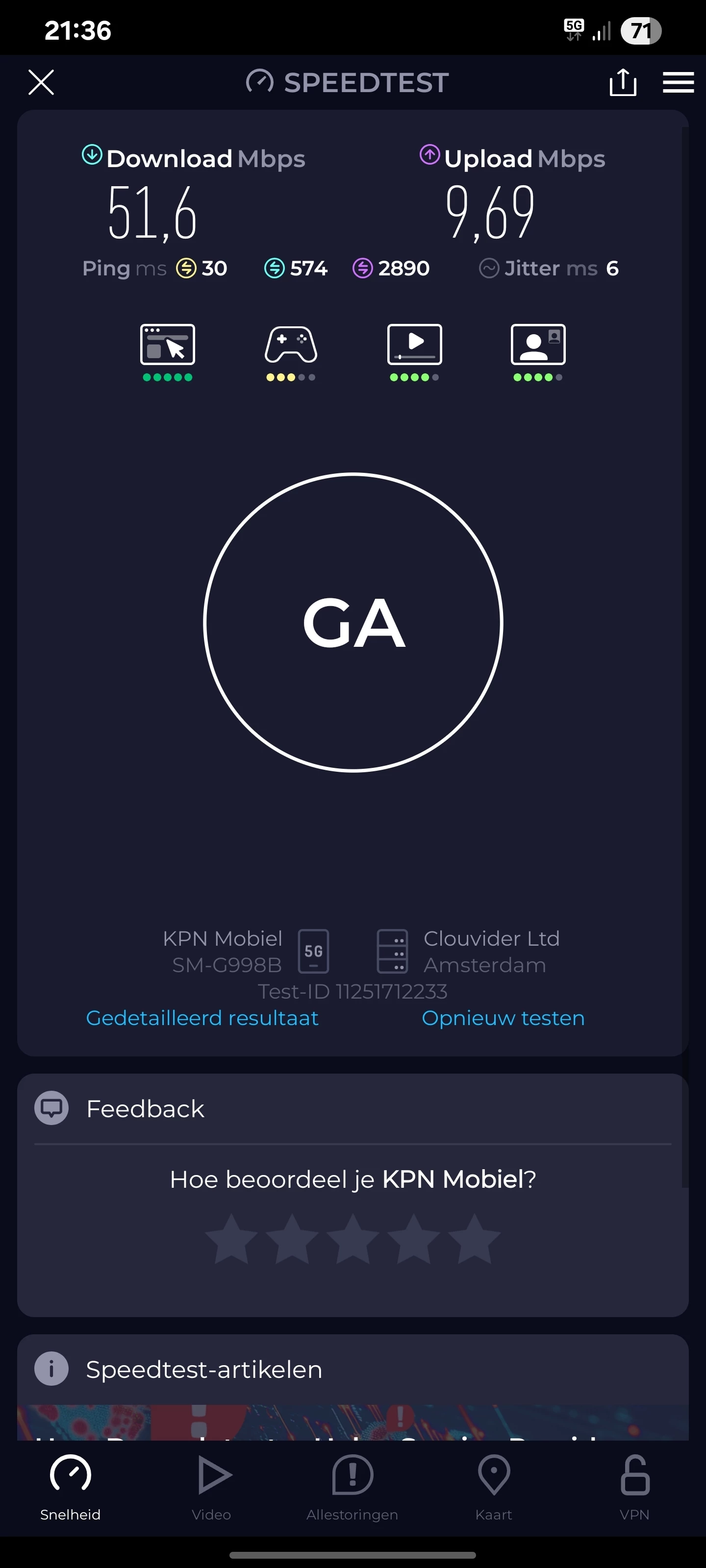 Als ik het dus goed begrijp, heb je niet overal last van slecht bereik en traag internet. In dat geval ben ik toch bang dat dit wel eens aan de locatie kan liggen waar jij op dat moment bevindt. Als je wel goede dekking ziet op deze dekkingskaart, dan zou ik je willen adviseren om hier een belafspraak voor in te plannen met onze Helpdesk. Dan kan er een ticket voor onze Technische Dienst worden aangemaakt en zal het verder onderzocht worden. Houd je ons hier ook op de hoogte?
