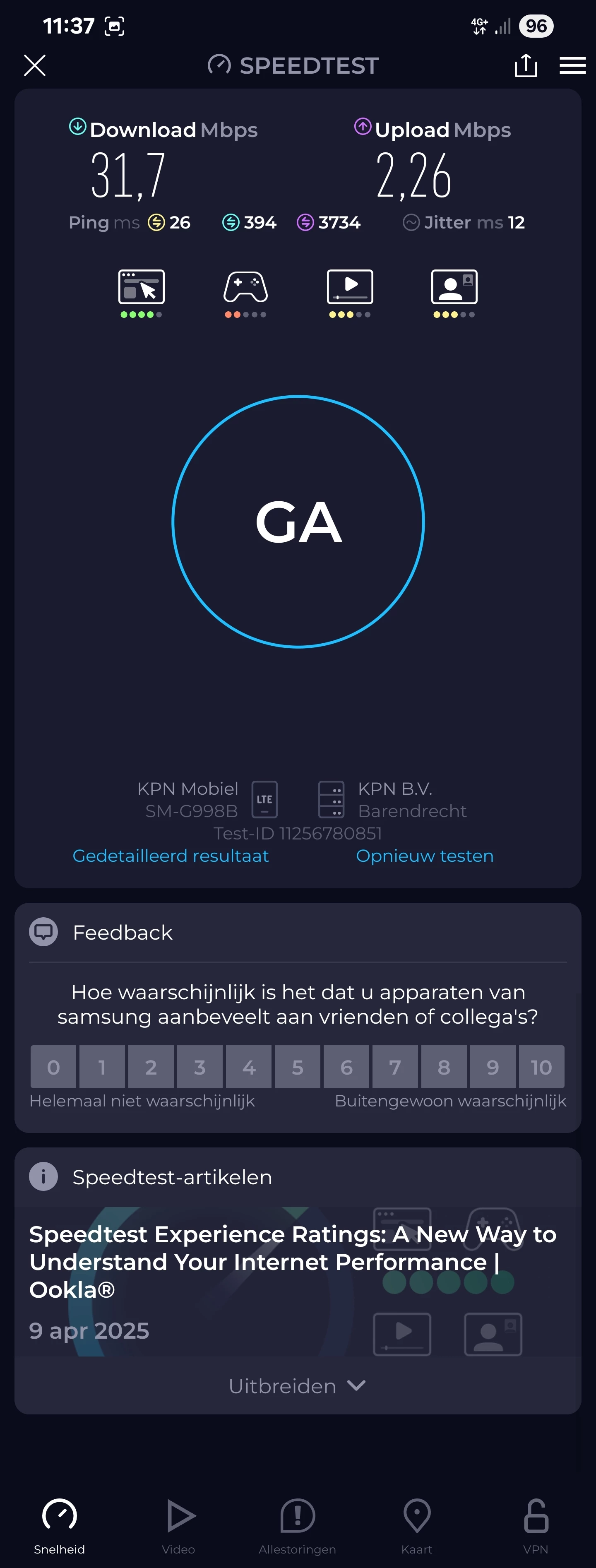 Momenteel heb ik 25 Down en 5 Up,  dus ben bereikbaar en kan gebruik maken van m'n mobieltje.
