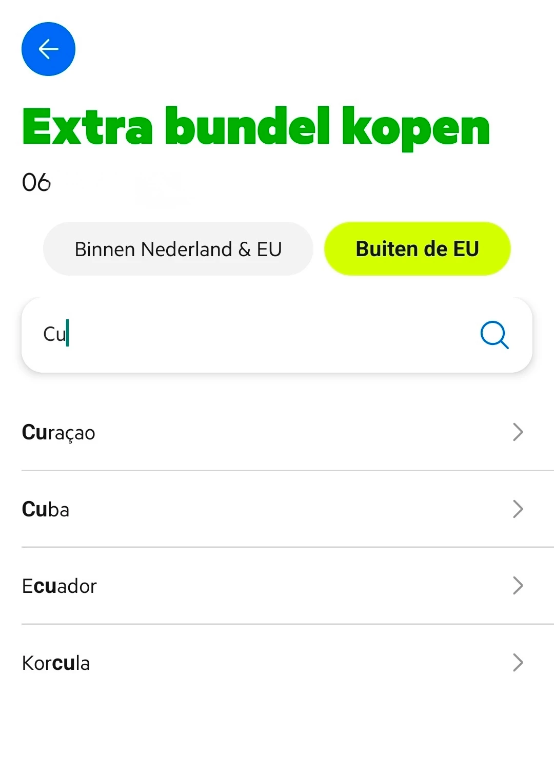 Hallo ​@Dirk vW , als ik in de MijnKPN app klik op Bundels kopen kan ik kiezen tussen "binnen NL & EU" en "buiten EU". Zie jij dit niet?