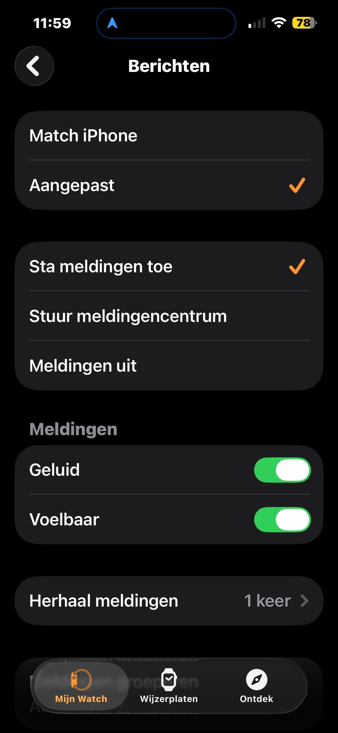 Eerst stond de apple watch op match iphone wat dat ook precies doet geen idee, maar sms verzenden lukt dus nog steeds niet vanaf de AWU3.