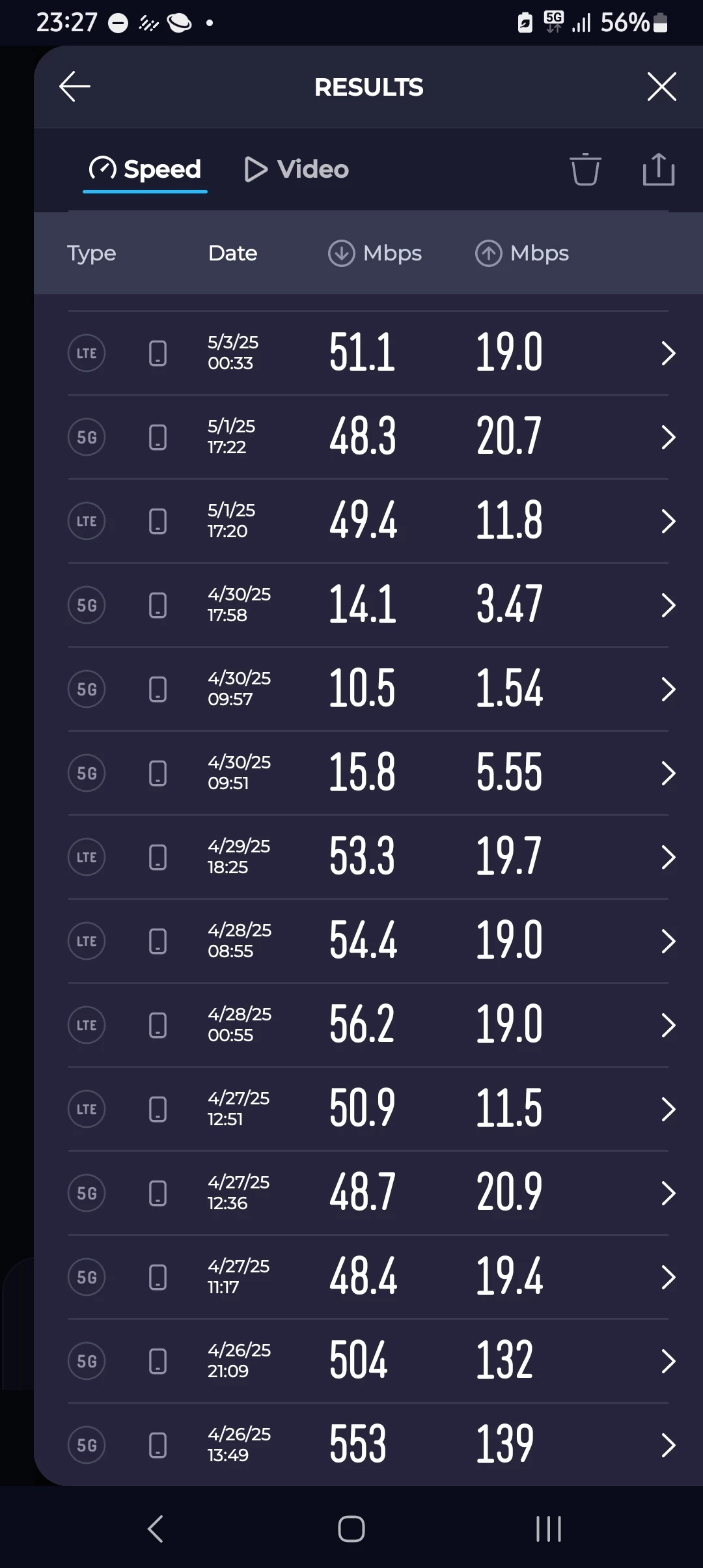 Sinds enkele dagen is de 4g en 5g downsnelheid van mijn Unlimited50 abonnement gezakt van overal ±50 Mbps naar ± 20 Mbps. Ligt het aan mijn Samsung A23 5g telefoon of hebben meer mensen hier last van?