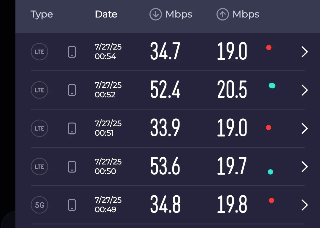 @Sloech In de speedtest app van Ookla heb je 2gb gratis VPN. Daarmee kan je de 5g snelheid testen.Ik vermoed dat hij dan wel de 50 Mbps haalt.