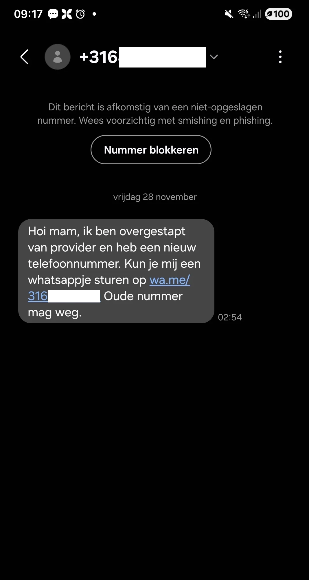 Beste ​@Elise007 nummer meteen blokkeren in WhatsApp en bericht verwijderen.