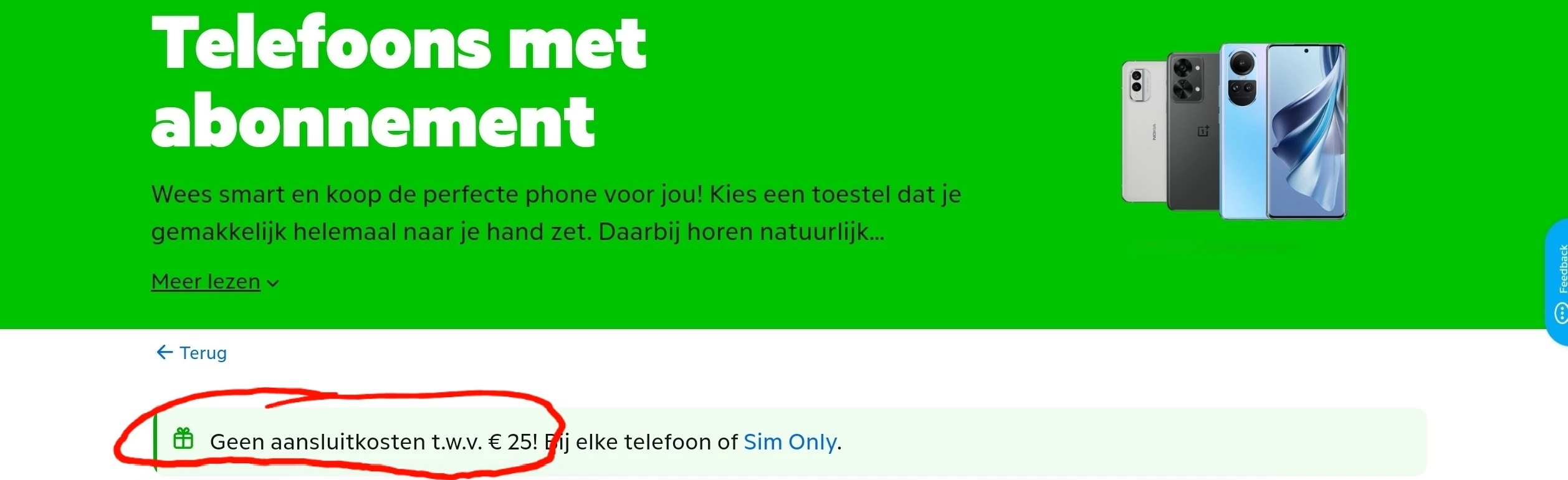 Standaard betaal je bij een nieuw mobiel abonnement altijd €25,- aansluitkosten.