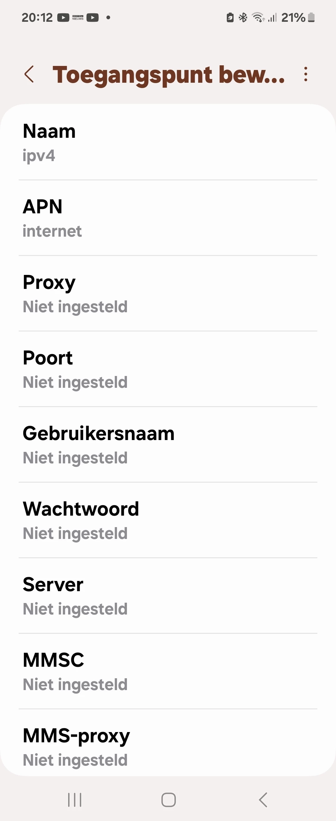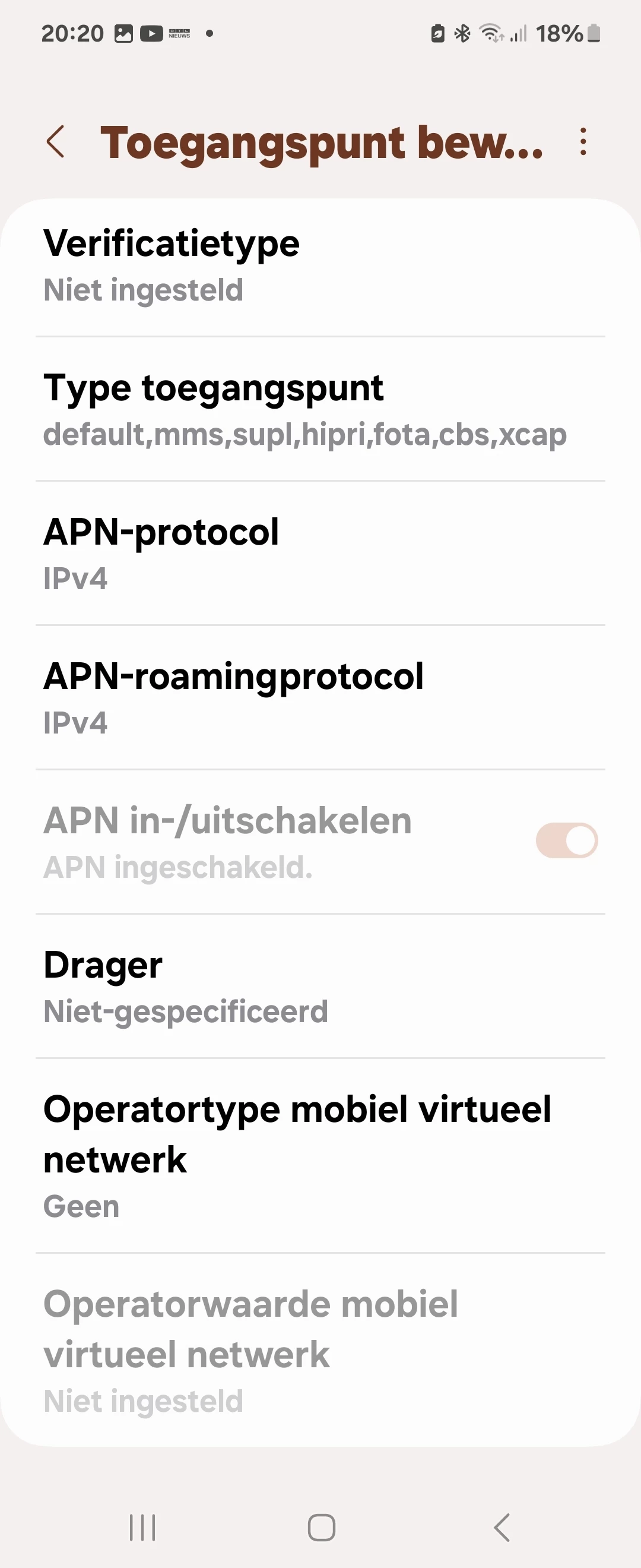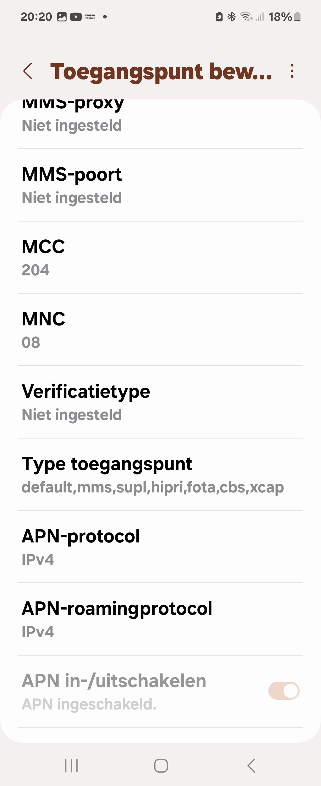 Alleen dat het aan mijn toestel ligt, aan een ap dat geloof ik niet, normaal moeten deze nieuwere toestellen ( heb deze telefoon bij hen gekocht)alle aps aankunnen he, ze konden ook niet zeggen aan welke ap...maar goed ik heb internet nu dus prima. Laat even weten of het bij jou ook werkt