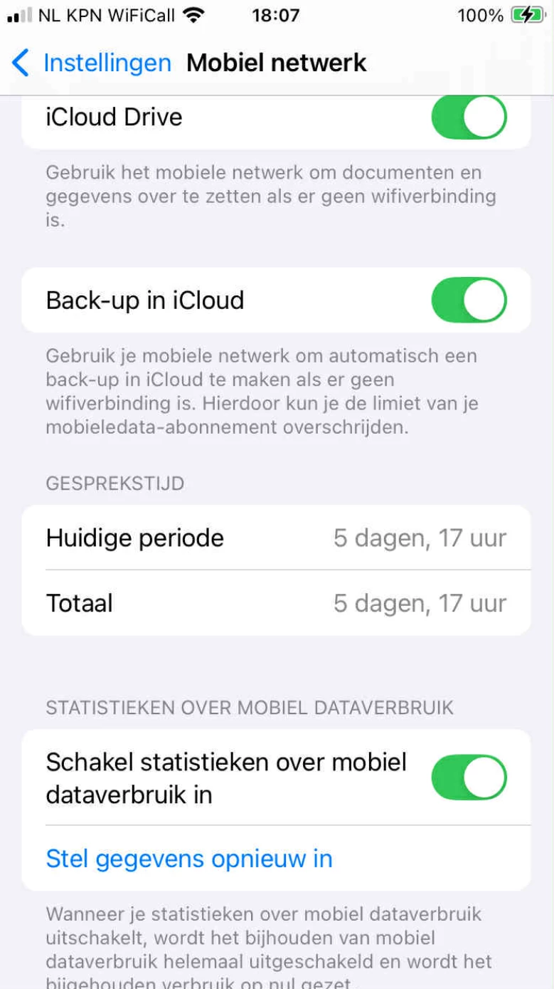 Waar kan ik op een iphone zien hoeveel data ik nu per gemiddeld per maand verbruik?