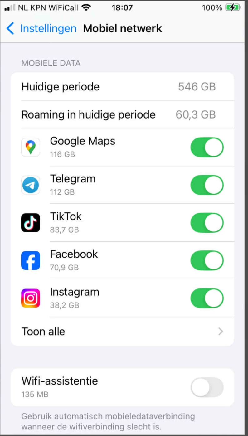 Zal ik dan in 5 dagen en 17 uur 546 GB hebben gebruikt, das toch wel heel veel, dat kan bijna niet, ook niet als een heavy user, kijk wel veel tiktok, youtube, etc?!?