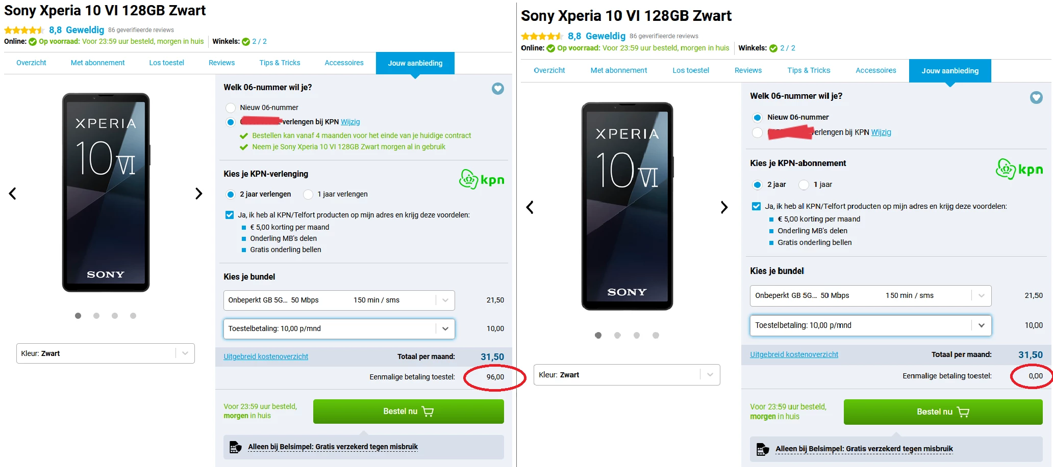 Waarom kost toestel via Belsimpel meer bij verlenging dan bij nieuw abonnement?